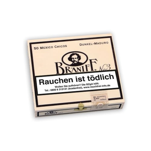 Любители сигарилл оценят сигариллы Braniff Chicos Maduro No.3 средней крепости. Прочные сигариллы Braniff Chicos Maduro No.3 изготовлены на станке с коротким наполнителем. Изысканные сигариллы Braniff Chicos Maduro No.3 имеют темный натуральный покровный лист из мексиканского табака Мадуро. Наполнитель состоит из высококачественных табаков из регионов выращивания Бразилии, Гаваны и Явы. В качестве связующего листа используется стрипсовый табак. Длинные, очень тонкие сигариллы Braniff Chicos Maduro No.3 обладают насыщенным ароматом и дарят удовольствие от курения. Благодаря своему мягкому вкусу сигариллы Braniff Chicos Maduro No.3 также подойдут новичкам. Прочная деревянная коробка содержит 50 сигарилл Braniff Chicos Maduro No.3. Длина: 117 мм Диаметр: 7,5 мм Покровный лист: натуральный, темный Содержание: 50 сигарилл
