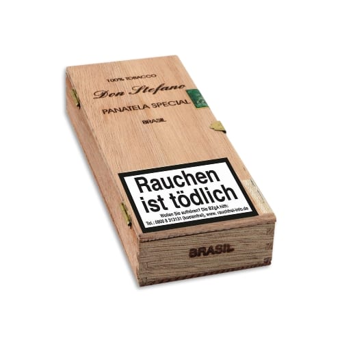 Don Stefano Panatela Special Brasil — это сигары лёгкой и средней крепости в тонком формате. Доступные по цене сигары Don Stefano Panatela Special Brasil — это короткие сигары машинного производства, изготовленные из 100% чистого табака. Прочные сигары Don Stefano Panatela Special Brasil с круглой чашей имеют тёмный натуральный покровный лист из бразильского табака Mata Fina. Наполнитель состоит из традиционной специальной смеси лучших табаков из бразильского региона Mata Fina и из Явы Ворстенланден. Для связующего листа используется табак из Явы Ворстенланден. Сигары Don Stefano Panatela Special Brasil средней длины отличаются умеренным содержанием никотина, низкой тягой и равномерным горением. Чистый табачный вкус превосходно раскрывается при курении. Ароматический акцент сделан на землистых, кожаных и древесных нотах в сочетании с лёгкими сладкими нюансами. Удовольствие от курения гармонично сбалансированное, тонко-пряное и мягкое. Сигары Don Stefano Panatela Special Brasil подойдут как любителям сигар, так и новичкам благодаря своей крепости и простоте формы. В деревянной коробке находятся 10 готовых к курению сигар Don Stefano Panatela Special Brasil. Длина: 14,7 см / 5,8 дюйма. Диаметр: 1,1 см / калибр 28. Время курения: около 20 минут. Аромат: отсутствует. Способ производства: короткий наполнитель, машинное производство. Страна происхождения: Бразилия, Индонезия. Покровный лист: натуральный, темный, бразильский Mata Fina. Упаковка: 10 сигар.