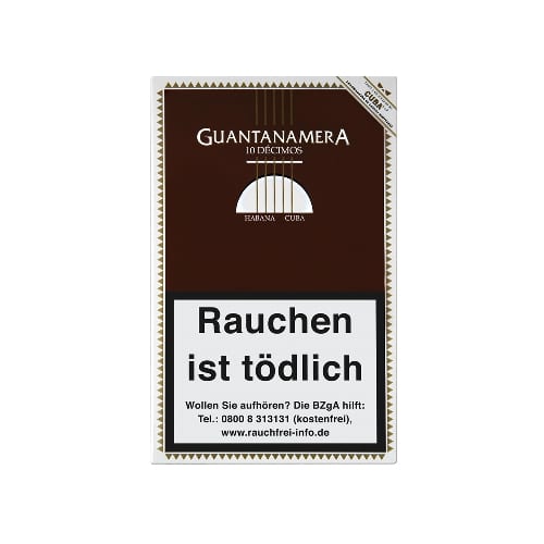 Guantanamera Décimos — это сигары средней крепости формата Slim Panatela. Доступные по цене сигары Guantanamera Décimos марки Slim Panatela — это сигары машинного производства с короткими наполнителями из 100% чистого табака. Прочные сигары Guantanamera Décimos с круглой головкой имеют натуральный покровный лист средне-коричневого цвета. Табак для покровного листа, наполнителя и связующего листа поступает из региона Вуэльта-Арриба, второго по значимости табачного региона Кубы. Сигары Guantanamera Décimos средней длины отличаются умеренным содержанием никотина, мягкой тягой и равномерным горением. Тонкий пряный табачный вкус со сладкими и горькими элементами оживает при курении. Ароматическая гамма этих пурос включает древесные, землистые, кожаные и ореховые ноты, иногда сопровождаемые травяными и цветочными нюансами и оттенком шоколада. Натяжение готовых к курению сигар Guantanamera Décimos остается относительно постоянным на протяжении всего процесса курения. Удовольствие от курения сбалансированное, мягкое и гладкое. Сигары Guantanamera Décimos одинаково подходят как постоянным, так и нерегулярным курильщикам сигар, а также новичкам. В картонной коробке находятся 10 сигар Guantanamera Décimos Slim Panatela в целлофановой обертке. Длина: 13 см / 5,1 дюйма. Диаметр: 1,2 см / калибр кольца 30. Время курения: около 30 минут. Аромат: отсутствует. Способ производства: короткий наполнитель, машинное производство. Страна происхождения: Куба. Покровный лист: натуральный, средне-коричневый, Куба. Количество: 10 сигар.