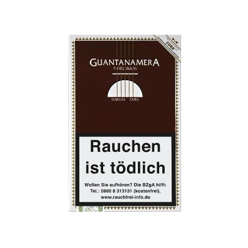 Guantanamera Décimos — это сигары средней крепости формата Slim Panatela. Доступные по цене сигары Guantanamera Décimos марки Slim Panatela — это сигары машинного производства с короткими наполнителями из 100% чистого табака. Прочные сигары Guantanamera Décimos с круглой головкой имеют натуральный покровный лист средне-коричневого цвета. Табак для покровного листа, наполнителя и связующего листа поступает из региона Вуэльта-Арриба, второго по значимости табачного региона Кубы. Сигары Guantanamera Décimos средней длины отличаются умеренным содержанием никотина, мягкой тягой и равномерным горением. Тонкий пряный табачный вкус со сладкими и горькими элементами оживает при курении. Ароматическая гамма этих пурос включает древесные, землистые, кожаные и ореховые ноты, иногда сопровождаемые травяными и цветочными нюансами и оттенком шоколада. Натяжение готовых к курению сигар Guantanamera Décimos остается относительно постоянным на протяжении всего процесса курения. Удовольствие от курения сбалансированное, мягкое и гладкое. Сигары Guantanamera Décimos одинаково подходят как постоянным, так и нерегулярным курильщикам сигар, а также новичкам. В картонной коробке находятся 5 сигар Guantanamera Décimos Slim Panatela в целлофановой обертке. Длина: 13 см / 5,1 дюйма. Диаметр: 1,2 см / калибр 30. Время курения: около 30 минут. Аромат: отсутствует. Способ производства: короткий наполнитель, машинное производство. Страна происхождения: Куба. Покровный лист: натуральный, средне-коричневый, Куба. Количество: 5 сигар.