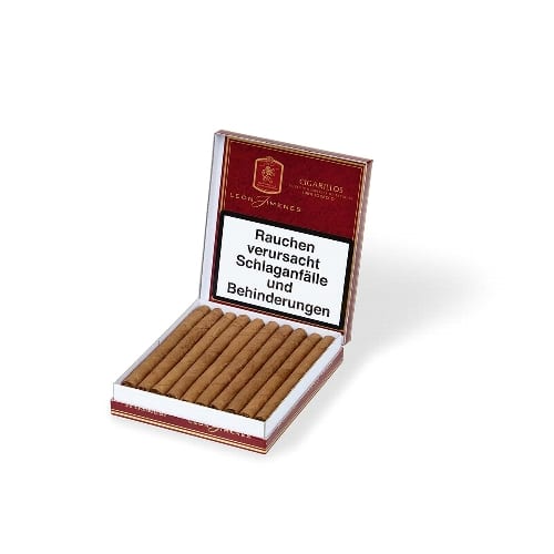 Любители сигарилл ценят сигариллы León Jimenes средней крепости. Эксклюзивные сигариллы León Jimenes – это сигариллы машинного производства с короткими наполнителями, изготовленные из 100% табака. Идеально изготовленные сигариллы León Jimenes покрыты светло-коричневым натуральным покровным листом Connecticut Shade из долины реки Американ. Гармоничная смесь наполнителя и связующего листа изготовлена из отборных табаков из Доминиканской Республики. Дополнительные ароматизаторы отбрасываются в пользу сложного табачного букета. Ярко выраженные древесные, ореховые и фруктовые ноты дополняются легкой сладостью, тонким оттенком корицы и тонкими оттенками обжарки. Длинные сигариллы León Jimenes готовы к курению, обладают умеренным содержанием никотина, мягким пряным ароматом и насыщенным, сливочным вкусом. Удобная картонная коробка содержит 20 сигарилл León Jimenes. Длина: 105 мм Диаметр: 9,4 мм Покровный лист: натуральный, средне-коричневый Содержание: 20 сигарилл