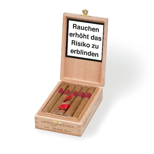 León Jimenes No. 5 — сигары средней крепости в удобном формате Petit Corona. Эксклюзивные сигары León Jimenes No. 5 Petit Corona — это длинные сигары ручной работы из 100% чистого табака. Круглые сигары León Jimenes No. 5, искусно изготовленные доминиканской Tabacalera La Aurora S.A., имеют очень легкий и элегантный натуральный покровный лист Connecticut Shade из Ривер-Вэлли в США. Наполнитель и связующий лист изготовлены из отборных табачных листьев из региона Валле-Сибао в Доминиканской Республике. Небольшая доля никарагуанского табака включена в наполнитель для улучшения консистенции. Сигары León Jimenes No. 5 средней длины отличаются умеренным содержанием никотина, отличной стойкостью тяги, приятным развитием дыма и равномерным горением с серебристо-серым пеплом. Вкус табака превосходно сбалансированный, пряный, с древесными, кожаными, травяными, фруктовыми и перечными нотами, а также с легкой сладостью с лёгким оттенком корицы. Иногда ощущаются тонкие нюансы орехов, шоколада, кофе и жареных нот. Со второй трети сигар табачные ароматы изысканных сигар León Jimenes No.5 становятся ещё интенсивнее. Удовольствие от курения этих первоклассных сигар – насыщенное, мягкое и сливочное. Длительное хранение премиальных сигар без упаковки в хьюмидоре положительно влияет на раскрытие вкуса. Благодаря своей крепости и простоте формы сигары León Jimenes No.5 подойдут как постоянным, так и нерегулярным курильщикам сигар, а также новичкам. В деревянной коробке находятся 10 сигар León Jimenes No.5, индивидуально упакованных в целлофан. Длина: 12,7 см / 5 дюймов Диаметр: 1,5 см / калибр кольца 38 Время курения: около 45 минут Аромат: нет Способ производства: длинная начинка, полностью ручная работа Страна происхождения: Доминиканская Республика, Никарагуа, США Покровный лист: натуральный, светлый, США River Valley Connecticut Shade Состав: 10 сигар
