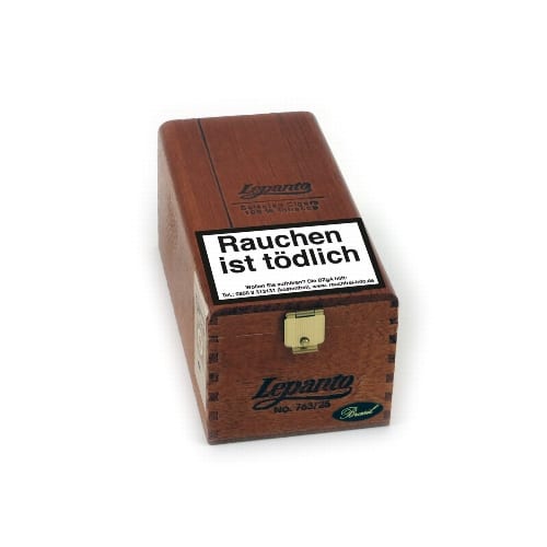 Lepanto No. 763 Brasil — это сигары средней крепости в формате Mini Perfecto. Сигары Lepanto No. 763 Brasil Mini Perfecto по привлекательной цене — это короткие сигары машинного производства, изготовленные из 100% табака. Прочные сигары Lepanto No. 763 Brasil с конической чашей имеют темный натуральный покровный лист из бразильского табака Mata Fina. Наполнитель состоит из тщательно сбалансированной смеси отборных премиальных табаков из региона Мата Фина в Бразилии, Remedios на Кубе и Besuki на Яве. Для связующего листа используется табак с Явы. Сигары Lepanto No. 763 Brasil средней длины предлагают умеренное содержание никотина, приятную тягу и ровное горение. Табачный вкус гармонично сбалансирован и пряен с мощным взаимодействием ароматов. Акцент делается на травянистых и фруктовых нотах с перечными нюансами. Удовольствие от курения насыщенное, мягкое и гладкое. Готовые к курению сигары Lepanto No. 763 Brasil подойдут как постоянным, так и нерегулярным курильщикам, а также новичкам благодаря своей крепости и простоте формы. Прочная деревянная коробка собственного производства содержит 25 сигар Lepanto No. 763 Brasil Mini Perfecto. Длина: 12,7 см / 5 дюймов. Диаметр: 1,1 см / калибр кольца 28. Время курения: около 20 минут. Аромат: отсутствует. Способ производства: короткий наполнитель, машинное производство. Страна происхождения: Бразилия, Куба, Ява. Покровный лист: натуральный, темный, бразильский Mata Fina. Количество: 25 сигар.