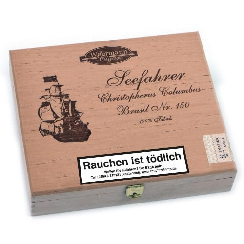 Seefahrer Christopherus Columbus No. 150 Brasil — это сигары средней крепости в удобном формате Corona. Доступные по цене сигары марки Seefahrer Christopherus Columbus No. 150 Brasil — это короткие сигары машинного производства, изготовленные из 100% чистого табака. Прочные сигары Seefahrer Christopherus Columbus No. 150 Brasil с круглой чашей имеют темный натуральный покровный лист из бразильского табака. Наполнитель состоит из традиционной специальной смеси отборных табаков со всего мира. Для связующего листа используется табак из Индонезии. Сигары Seefahrer Christopherus Columbus No. 150 Brasil средней длины в формате Corona отличаются умеренным содержанием никотина, легкой тягой и равномерным горением. Гармонично сбалансированный табачный вкус с пряными и древесными нотками превосходно раскрывается при курении. Удовольствие от курения полнотелое и мягкое. Сигары Seafarer Christopherus Columbus № 150 Brasil идеально подходят для начинающих любителей сигар благодаря своей крепости и простоте формата. В деревянной коробке 20 сигар Seafarer Christopherus Columbus № 150 Brasil. Длина: 13 см / 5,1 дюйма. Диаметр: 1,65 см / калибр 42. Время курения: около 35 минут. Аромат: отсутствует. Способ производства: короткий наполнитель, машинное производство. Страна происхождения: различные страны. Покровный лист: натуральный, тёмный. Упаковка: 20 сигар.