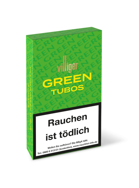 Villiger Green Tubos 4 сигары VILLIGER GREEN TUBO Сигара Panetela для мягкого, сладкого и свежего наслаждения табаком. Покровный лист: Наполнитель: Длина: ø: Артикул: Контейнер: KVP: EAN Контейнер: EAN Упаковка: Мексика Суматра Вирджиния / Берли / Лимон 122 мм 11,5 мм